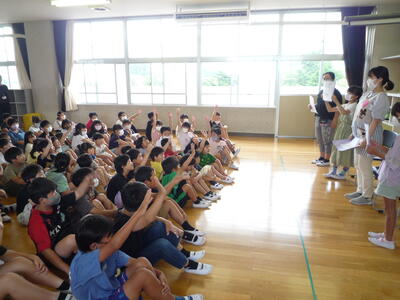 1学期の終業式を挙行しました。1学期は、1年生97日、2~6年生99日の授業日数がありましたが、大きな事故なく無事に過ごすことができました。式の中で作文発表がありましたが、全校生79名を代表して3名の子が1学期がんばったことや2学期がんばりたいことを発表してくれました。3人とも発表の態度や声の大きさ、内容ともとてもすばらしかったです。明日から5日間の秋休みになります。ぜひ御家庭で、秋を満喫していただければと思います。12日(木)から2学期がスタートしますのでよろしくお願いします。