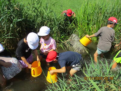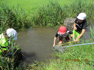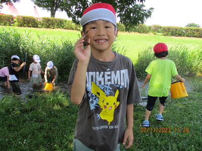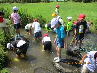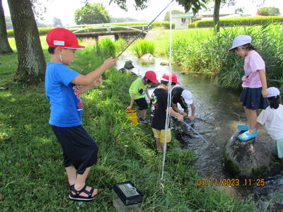 11日(火)、1,2年生が生活科の校外学習でグリーンパークに行ってきました。雨天のため延期になっていましたが、11日は川の水が気持ちよく感じるほどに気温が上昇しました。道具を使って川の様子を観察したり、水の中の生き物を見つけたりしました。ザリガニやヤゴを発見することができました。