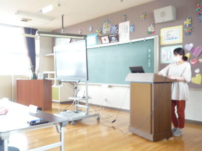 幼小連携事業の一環として、のびのび保育園の先生方にも参加していただき、1年生の研究授業を行いました。「伝え合う力を高める支援のあり方の工夫」をテーマとし、国語の「くちばし」を教材とした実践です。1年生はみんな自分の考えをペアの友達に伝えようとがんばっていました。鳥のくちばしの形や役割が違うことに気が付きました。今回は、「キツツキ」「オウム」「ハチドリ」を取り上げた説明文ですが、「他の鳥のくちばしも調べたい!」など、興味関心が高まっていることを強く感じました。