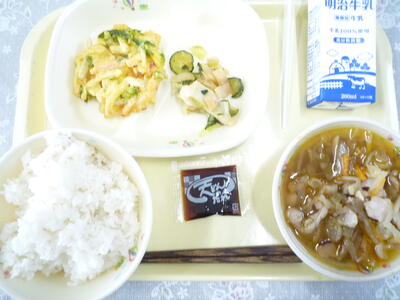 本日のメニューは、「ご飯」、「牛乳」、「チンジャオロース」、「春巻」、「キクラゲスープ」です。「中華フェア」のメニューでプール活動で消費したエネルギーをチャージします。今日も美味しくいただきました。ごちそうさまでした。