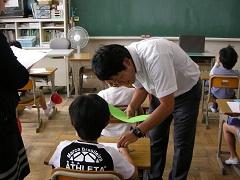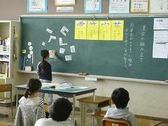 4年生の授業参観は、国語で「漢字の組み立て」です。漢字のへん、つくりなどの構成を知り、漢字の組み立てについて考えました。分からないところをお父さんやお母さんにきいている姿が見られました。