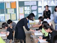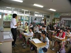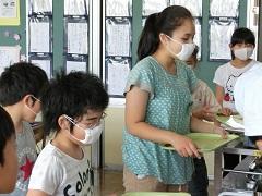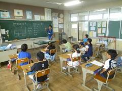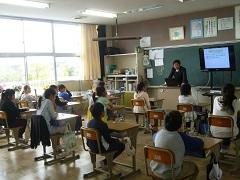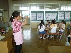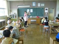 町立学校給食センターの栄養教諭が来校し、2年生を対象に食指導が行われました。「好き嫌いなく何でも食べよう」というタイトルで栄養に関する話を聞きました。子どもたちは、質問に素早く答えるなど意欲的でした。