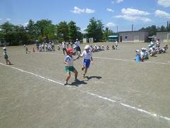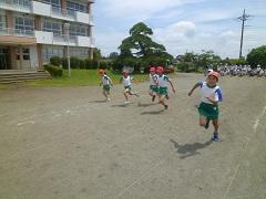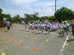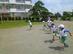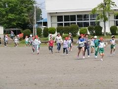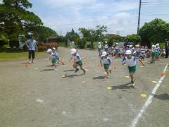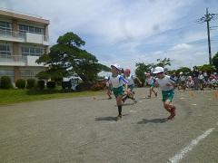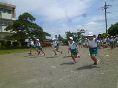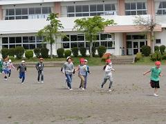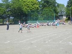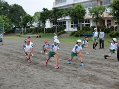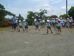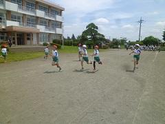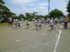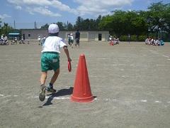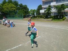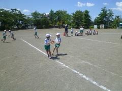 今日のスポーツタイムは、折り返しリレーを行いました。子どもたちは、全速力で走り、バトンを渡していました。