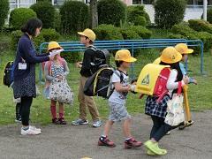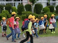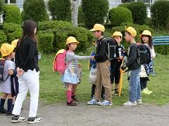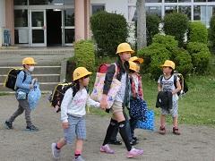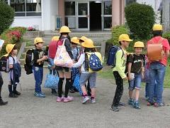 1年生は、4月中は4校時授業で給食後下校していましたが、今日から通常どおり5校時授業となりました。初めての、全学年一斉下校なので、登校班の上級生が1年生を迎えに行き、自分の登校班に並ばせました。また、登下校でお世話になっているスクールガードの紹介もありました。