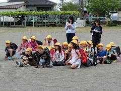 今年度第一回目の避難訓練を行いました。今回は、地震と火災対応です。地震発生の校内放送があり、子どもたちは、机の下に避難しました。ゆれがおさまった後、火災発生の想定の下、うんてい前に避難しました。子どもたちは真剣に訓練に取り組み、避難経路を確認することができました。