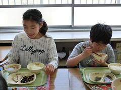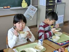 26日(火)の給食で1年生が全員完食しました。誰も残さないで食べたことはすばらしいことです。子どもたちは、毎日「給食がおいしい!おいしい!」と言って食べています。関係者の皆さまおいしい給食をありがとうございます。