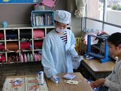 5年生は家庭科の「ひと針に心をこめて手ぬいにトライ」の授業です。学習したことを生かし、針と糸を使って使いやすい小物を工夫して作りました。