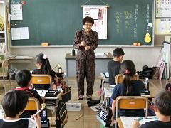 14日(火)に町立学校給食センターの栄養教諭が来校し、3年生を対象に食指導が行われました。「野菜について」というタイトルで野菜をたくさん食べたくなるような話を聞きました。子どもたちは、熱心に耳を傾けていました。