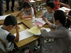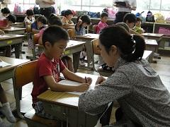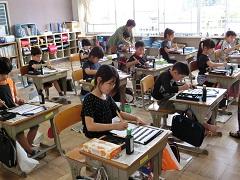 今年度も、鶴見先生と矢田部先生による書写指導が始まりました。対象は、3年生で、月1回実施されます。本格的な指導を受けられるので貴重な機会となっています。20日(金)は、筆の持ち方や動かし方などの基本的な内容の授業でした。