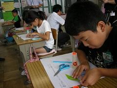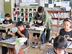 5年生は19名です。活動的な男子と、おしとやかな女子との組み合わせでバランスがとれています。最近は、算数の授業に加えて理科の授業にも興味・関心が高まっています。