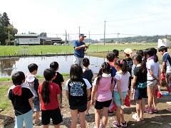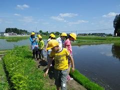 環境ボランティアの赤羽さんの指導の下、田植えを行いました。好天に恵まれ、少し暑いくらいでしたが、作業は順調に進み、上手に植えることができました。例年のように、終了する頃にはほとんどの児童が泥だらけになっていました。また、協力してくれた保護者の皆さまありがとうございました。