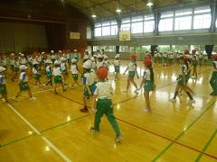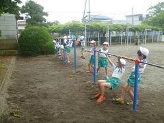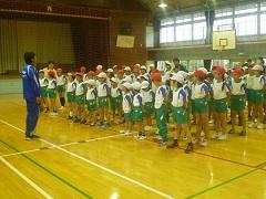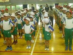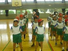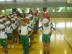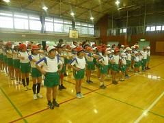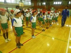 今日のスポーツタイムは、集合・整列・体操の隊形などの集団行動の基本を行いました。
