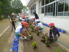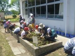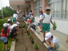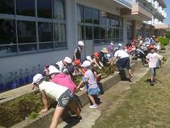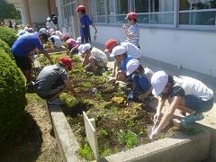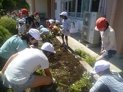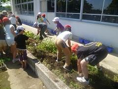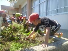 ふれあい班ごとに管理しているふれあい花壇の花の入れ替えのため、現在植えてある花を抜く作業を行いました。子どもたちは、熱心に作業を行い、あっという間に完了しました。新しい花の植え付けは24日(火)に予定しています。