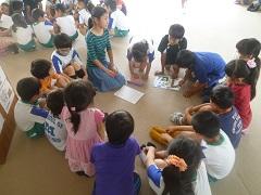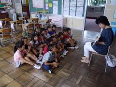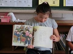 今週の朝の活動は読書週間です。今日はボランティアの方々の協力により、読み語りが行われました。今回から、人数の多い1・2年生を分けて全部で4ヶ所で行うことにしました。今日も、子どもたちは熱心に聞いていました。