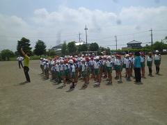 今年度最初のスポーツタイムを実施しました。この時間は、児童の体力向上を目的に年間を通して計画的に実施するものです。今日は、集合・整列・気をつけ・休めの姿勢などの集団行動の基本を行いました。
