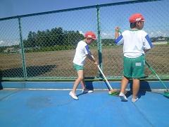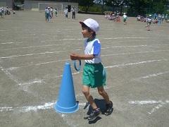 22日(水)に町民広場で地区小学校陸上競技大会が行われ、本校からは8名が出場しました。結果は、5年女子走り高跳び第1位、5年女子ボール投げ第3位、6年男子80mH決勝進出と大健闘しました。他の種目もあと一歩で決勝進出を逃すという状況でたいへんがんばりました。