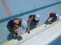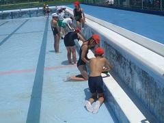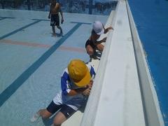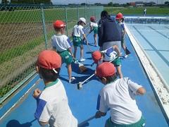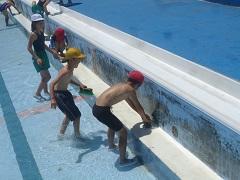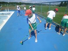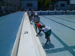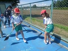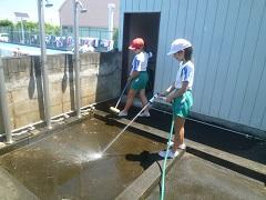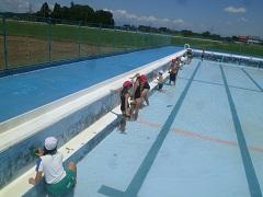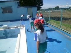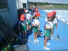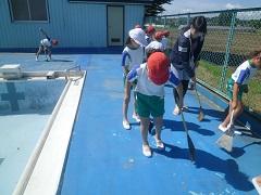 10日(金)にプール清掃を行いました。まず、3・4校時に3・4年生がプールサイドを中心に清掃しました。暑い中、子どもたちは一生懸命に作業しました。
