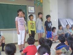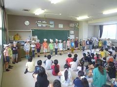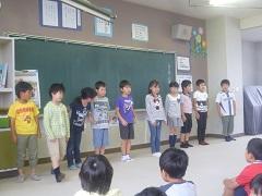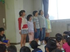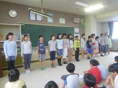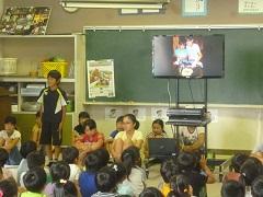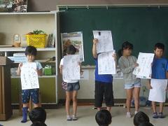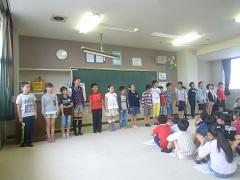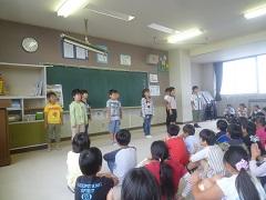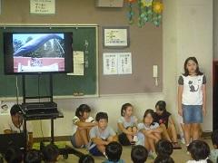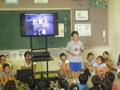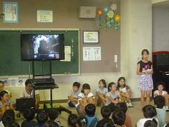 6年生は修学旅行の報告です。お気に入りの写真をもとに思い出をひとりひとり発表しました。ユーモアも交えた分かりやすい発表に、2~5年生は釘付けでした。次回の1・3・5年生の発表が楽しみです。