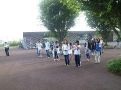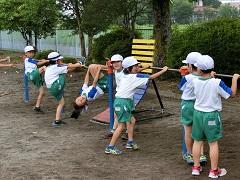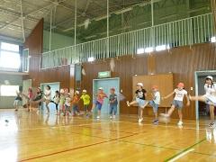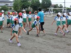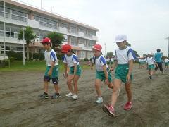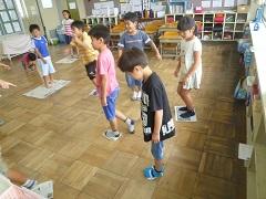 5・6年生のスポーツタイムはストレッチです。歩きながら体を伸ばしました。