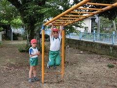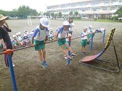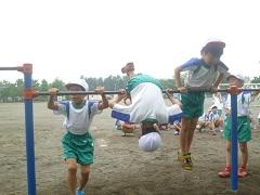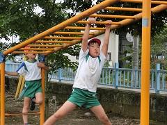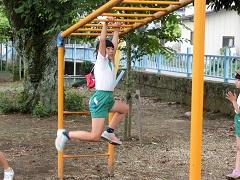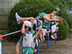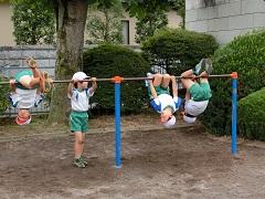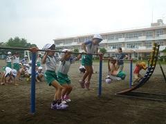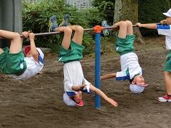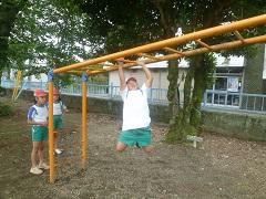 今日のスポーツタイムは、ブロック別活動です。1・2年生は鉄棒で、様々な種目に挑戦しました。