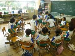13日(月)に町が推進している幼保小ジョイントプラグラムの一環として1年生で国語科の研究授業を行いました。単元名は「あいうえおで あそぼう」です。当日は、のびのび保育園の職員2名も参加してくださり、授業の後、授業研究会を行いました。保育園の職員の方は、卒園生の成長した姿にびっくりしていました。
