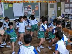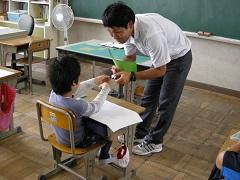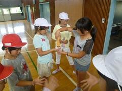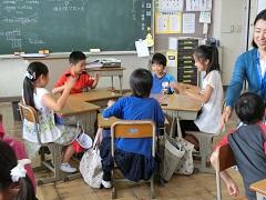26日(火)に2年生が、1年生と一緒にじゃんけん列車やころがしドッジボールをしたり、名刺交換をしたりしました。ドッジボールでは、1年生に優しくボールを譲ったり、もらった名刺を「ずっと、とっておくね。」と声をかけたり、お兄さんお姉さんの立場で活動ができました。