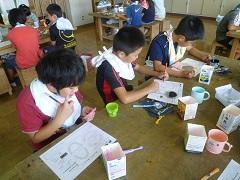 13日(月)に2年生が校外学習に行きました。予定ではファミリー公園でしたが、雨天のためエコハウスでマイプレート作りを行いました。子どもたちは、創意工夫してすばらしい作品を完成させました。