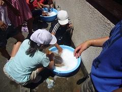 二日目の午前中の活動は、塩づくりです。暑さとのたたかいでした。