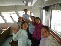 臨海自然教室、最初の活動は、見学船に乗っての鹿島港一周です。子どもたちは船旅を満喫しました。