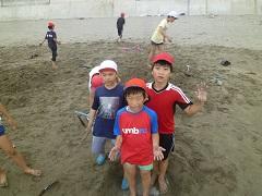二日目の午後の活動は、砂浜活動と砂の造形です。子どもたちは、ずぶ濡れになりながら、波や砂と格闘しました。
