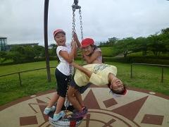 二日目の夕食の前に、アスレチックで楽しく遊びました。