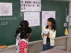 5年生の授業参観は、算数で「直方体+立方体のかさの表し方を考えよう」です。直方体、立方体の体積を求める公式を理解し、体積を求めました。5年生は算数の授業が大好きです。難しい課題ですが、ひとりひとりが集中して考えていました。