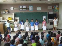 今日の朝の活動は、児童集会を行いました。今回は、2・4・6年生が発表する番です。まず、2年生が絵本からのクイズを出題しました。2年生以外の児童で答えを考えましたがなかなか難しかったです。