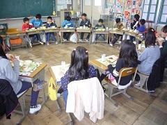 3年生は、「大豆健康パワー~ダイズだーいスキ!~」の題名で発表しました。各グループで大豆について調べ、インタビュー、実演、クイズなども交えて発表しました。1・2年生が招待され、〇Xクイズは大いに盛り上がりました。