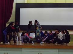 表現力養成講座発表会を行いました。まず、体育チームがエグザイルの銀河鉄道999に合わせて軽快なダンスをしました。リズムに乗った、躍動感あふれる発表でした。なお、発表会の進行は、5年生が担当しました。