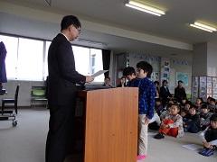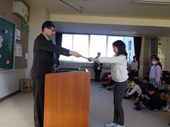 修了式を実施しました。各学年の代表児童に修了証書を授与した後、別の代表児童の作文発表があり、大きな声ではっきりとした発表がありました。どの学年も1年間で大きく成長しました。進級おめでとうございます。4月8日の始業式にまた会えるのを楽しみにしています。