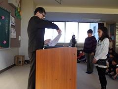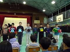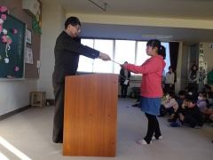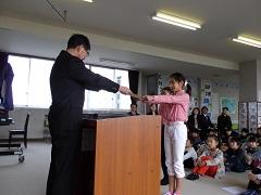 23日(火)の卒業式練習の前に表彰を行いました。今回は、町書き初め席書大会、県フィギュアスケート選手権大会、ファイナルカップミニバスケットボール大会で優秀な成績を収めた児童を表彰しました。おめでとうございます。