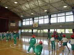今日のスポーツタイムは、体育館でリレーを行いました。