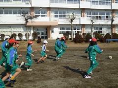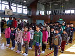 今日のスポーツタイムはボール運動です。1~3年生は体育館でドッジボールを、4~6年生は校庭でサッカーを行いました。子どもたちは、「たくましい子」をめざし、寒さの続く中、体力づくりに励んでいます。