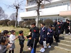 卒業式が実施され、18名の卒業生が無事、上高根沢小学校を巣立ちました。式終了後、在校生と職員が校庭で卒業生を見送りました。