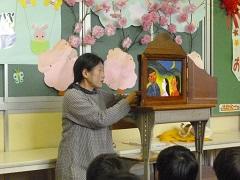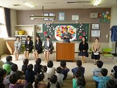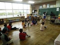 1・2年生がのびのび保育園との交流会を行いました。1年生は、劇「サラダでげんき」を上演しました。その見事な演技に保育園生も見入っていました。劇の後には、好きなサラダを一人一人発表しました。なお、この授業は、表現力養成講座の発表も兼ねています。