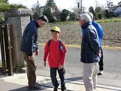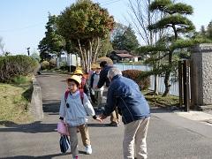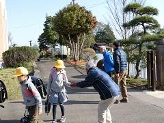 町内各小中学校の正門に地域の人が集まり、あいさつ運動に参加しています。本校にも、区長さんや児童民生委員さんが来校しています。子どもと大人が一緒になって、あいさつの輪をひろげましょう。