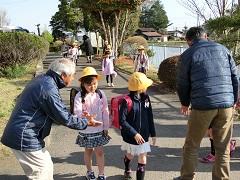 1年生がチューリップ交流を行いました。町更正保護女性会の方々が来校し、一緒にチューリップの球根を植えました。チューリップの花言葉は「正直」とか「思いやり」だそうです。来春にきれいな花が咲くのが楽しみです。