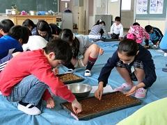 5年生が総合的な学習の時間で米づくりの学習をします。今日は、環境ボランティアの赤羽さんの指導の下、苗床づくりを行いました。苗箱に土をいれ、水をかけた後種もみをまき、土をかぶせました。初めて体験する児童がほとんどでしたが、手際よく作業ができました。さすが5年生と感心しました。今後は、環境ボランティアの岩本さんのビニルハウスを借りて、苗を育て、5月に田植えをします。