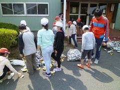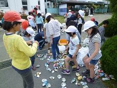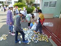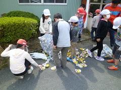 今年度もアルミ缶回収を行い、その収益を教育活動に役立てる予定です。今日は、クリーングリーンタイムに旧ふれあい班ごとに、アルミ缶つぶしを行いました。子どもたちはよく働き、春休み中に地域の方々が持ってきてくれた分を含め山のようにあった空き缶をあっというまにつぶし終わりました。協力してくれている地域の方々や保護者の皆さまありがとうございます。今年度もよろしくお願いします。