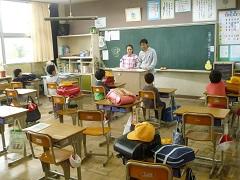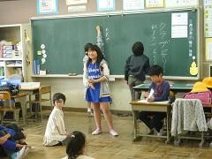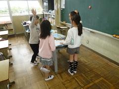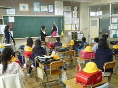 中学校の英語教員が小学校での外国語活動の授業を行うことで、中学校英語の授業に対する興味・関心を高め、中学校進学への不安を解消することを目的に、中学校教員の乗り入れ授業を行いました。子どもたちは意欲的に授業に取り組み、中学校への期待感を膨らませました。
