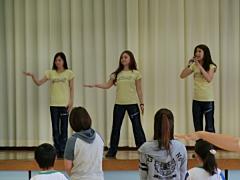 4年生が親子ふれ合い活動を行いました。リンク栃木ブレックスのチアリーダー三名を講師に、チアダンスを学びました。「笑顔とかけ声」を合い言葉に元気いっぱい活動しました。その後、教室で親子で一緒に給食を食べました。