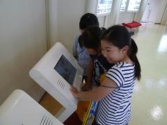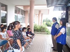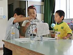 7月15日(水)に、1・2年生が校外学習で給食センターとグリーンパークに行きました。給食センターでは職員の説明を聞いた後、施設を見学しました。グリーンパークでは1・2年生混合のグループに分かれ活動しました。子どもたちは、ザリガニとりに夢中でした。