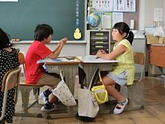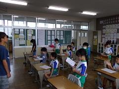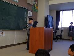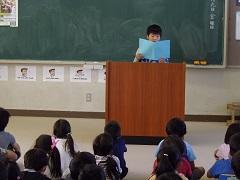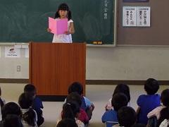 今日から、二学期が始まりました。始業式では、1・3・5年生の代表児童が作文発表をしました。