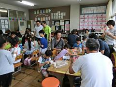 5年生が親子ふれ合い活動として、エコハウスの協力により、マイ箸づくりに挑戦しました。苦労して作った箸で食事をするのが楽しみです。その後、教室で親子で一緒に給食を食べました。